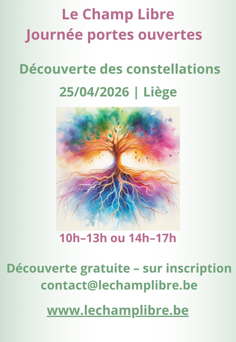 Samedi 25 avril, je vous invite à une journée unique pour entrer dans l’univers des constellations familiales et systémiques. Que vous soyez curieux de découvrir cet outil fascinant ou déjà familier des constellations, cette journée est l’occasion de découvrir ou redécouvrir cette pratique.